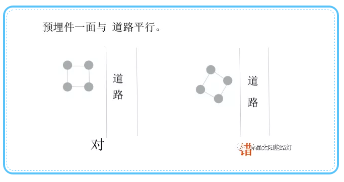 2、太陽能路燈必須安裝在光照充足且太陽能板迎光面上全天沒有遮擋陰影。太陽能板朝以北半球為例,坐北朝南;南半球相反,坐南朝北,赤道附近可以將板子平放。