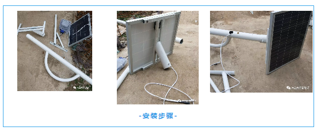 2、太陽能固定在太陽板架上,4個螺絲固定好,線從鋼管中穿出。
